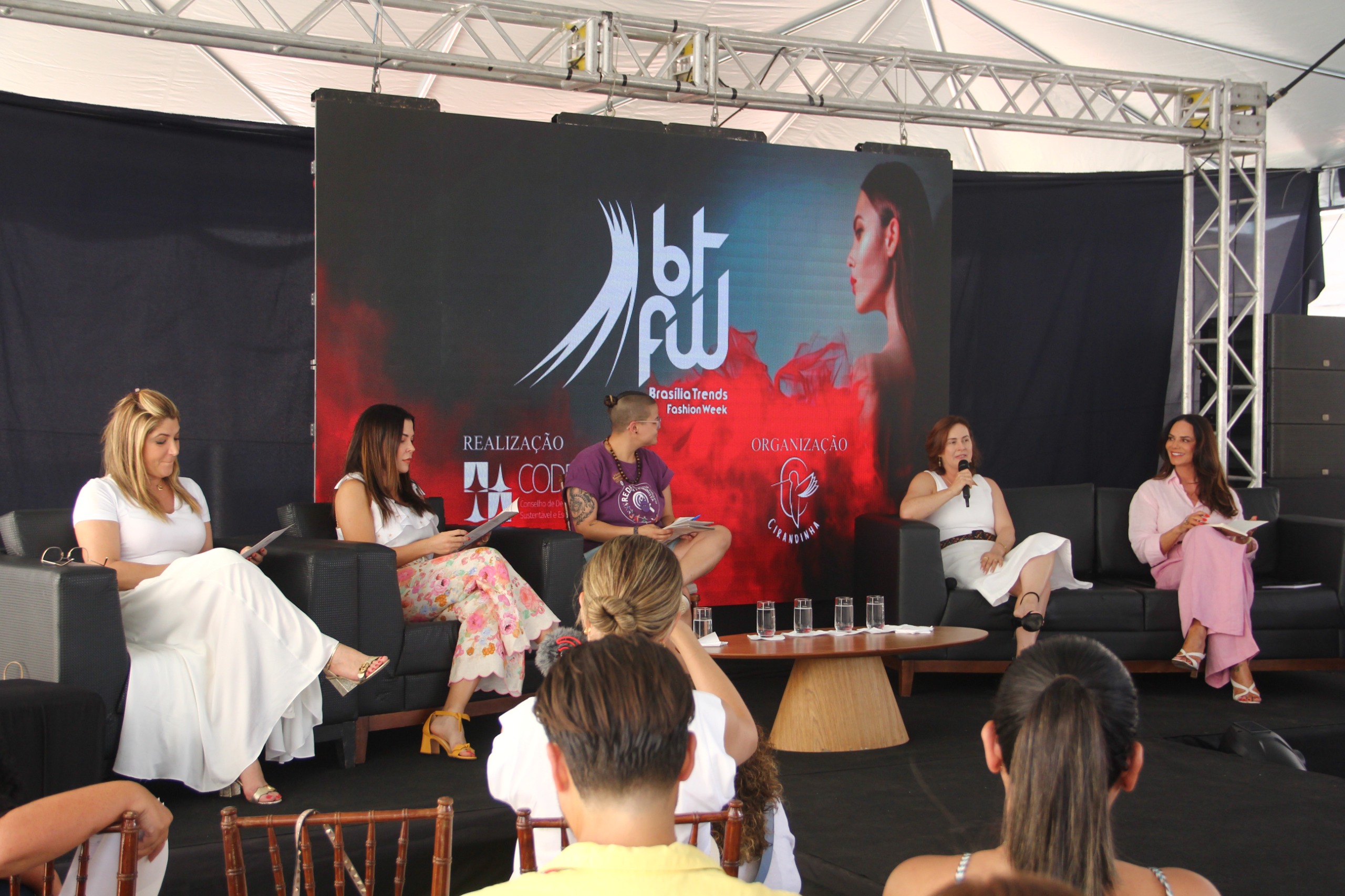 Em sua 4ª edição, o Brasília Trends Fashion Week (BTFW) promoveu a mesa-redonda “Violência Contra a Mulher: Causas e Consequências”, realizada no sábado (9), no Sesc Guará. Para discutir o tema, foram convidadas a superintendente do Sebrae no DF, Rose Rainha; a secretária de Justiça e Cidadania (Sejus-DF), Marcela Passamani; a vice-presidente do Conselho de Desenvolvimento Econômico Sustentável e Estratégico (Codese-DF), Laura Oliveira; a ex-modelo, ativista e madrinha do BTFW, Luiza Brunet; e a moderadora Drika Cordonet, da Rede de Economia Solidária e Feminista.