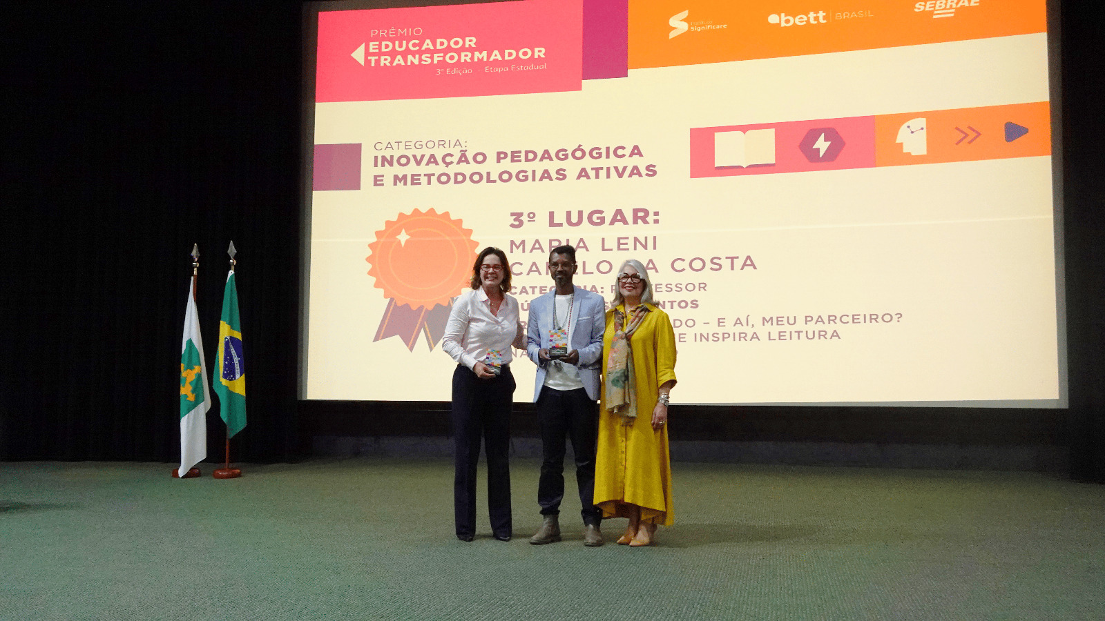 Em segundo lugar, ficou Cássio Ferreira, professor de educação profissional e responsável pelo projeto “LABCREA: Um Modelo de Educação Ativa para o Desenvolvimento de Competências Criativas e Empreendedoras na Economia Criativa”. Ele afirmou que, ao receber a notícia, inicialmente não acreditou na classificação e ressaltou a qualidade dos demais projetos concorrentes. “Mas, depois que a ficha caiu, senti uma sensação muito boa, de que estou indo na direção certa por meio da educação. Esse prêmio representa o reconhecimento de uma educação conectada à realidade, que une prática, inovação e formação empreendedora. Uma educação que transforma vidas”, declarou.