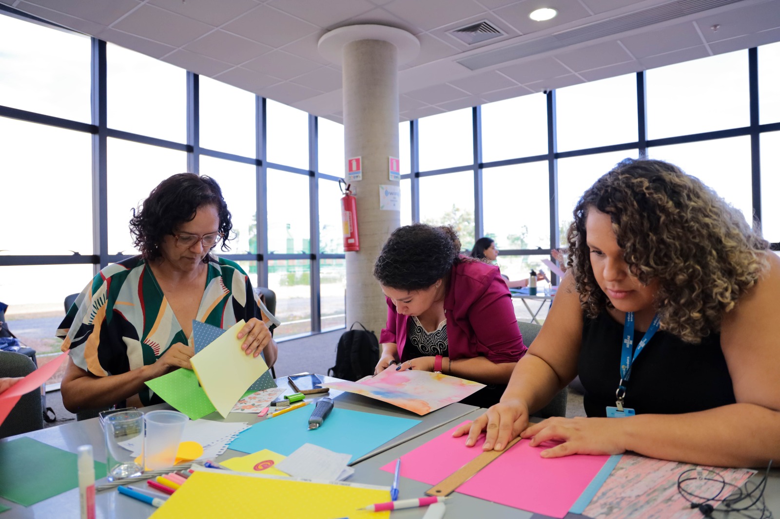 Conduzido pela mestre em Educação, Manu Bezerra, o circuito de oficinas “O Insight virou verbo!” explorou processos criativos dos participantes e abordou temas como: Scrapbook Pedagógico – Aprendizagens Visíveis, Criação de Narrativas Potentes, Bricolagem de Linguagens e World Café – Design de Conversas.