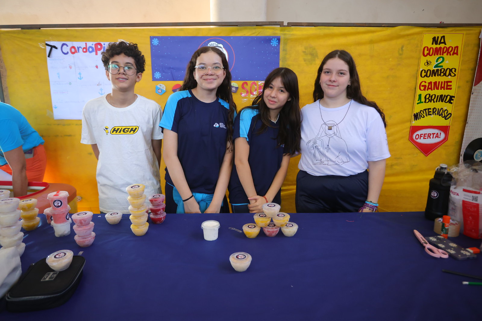 Enquanto alguns grupos apostaram na alimentação, o 7º ano decidiu inovar ao criar o Space Games, um espaço dedicado a sessões de videogame. Os valores variavam entre R$ 6 e R$ 14, oferecendo de três a vinte minutos de jogos como Fifa 22, Fortnite e corridas de Fórmula 1.