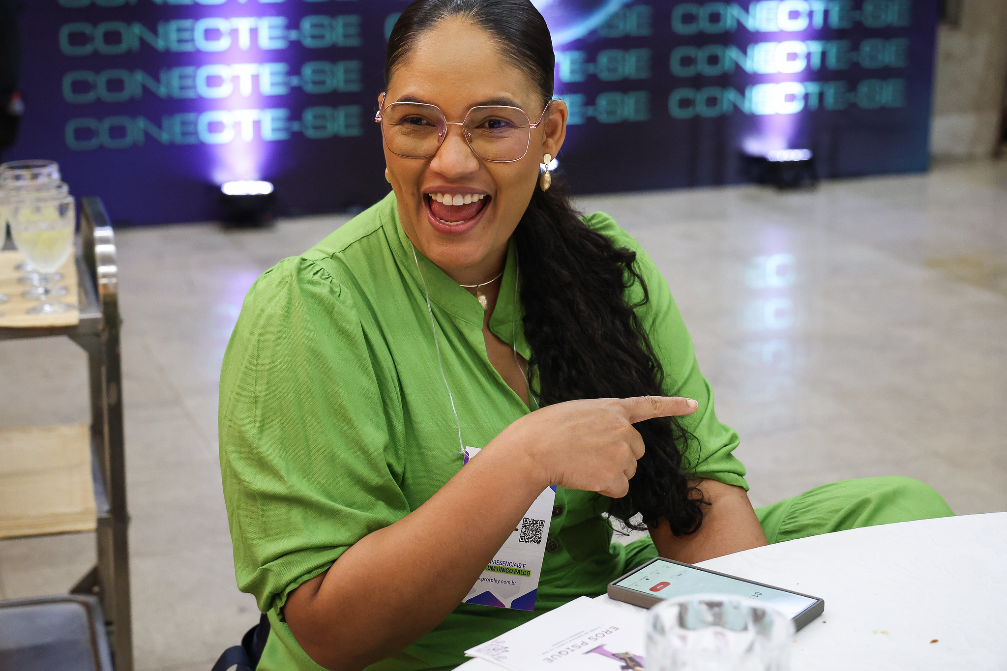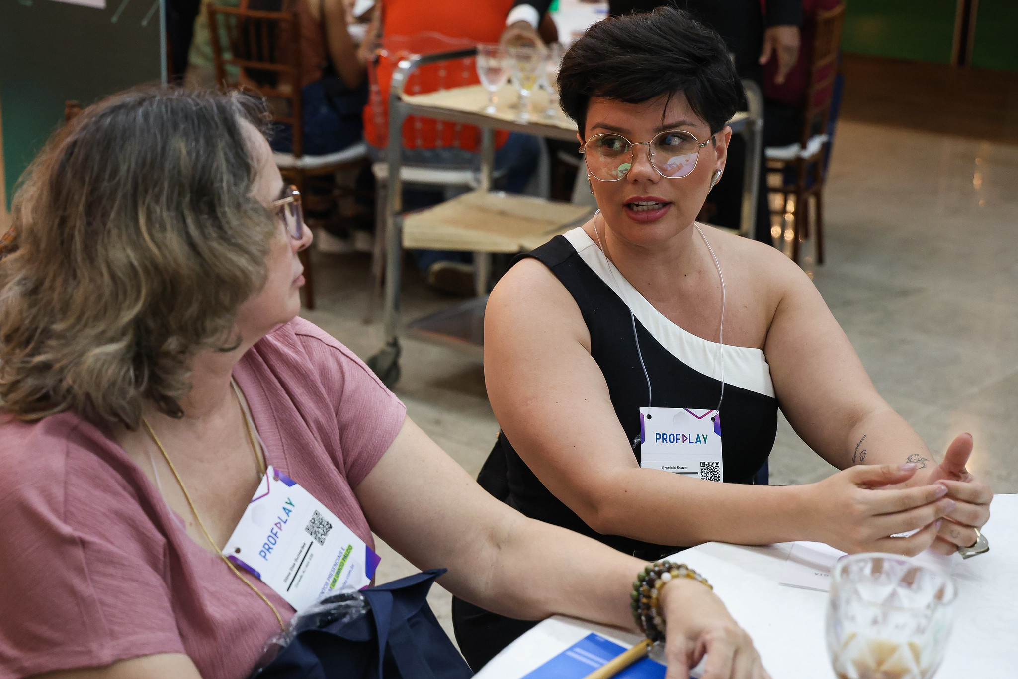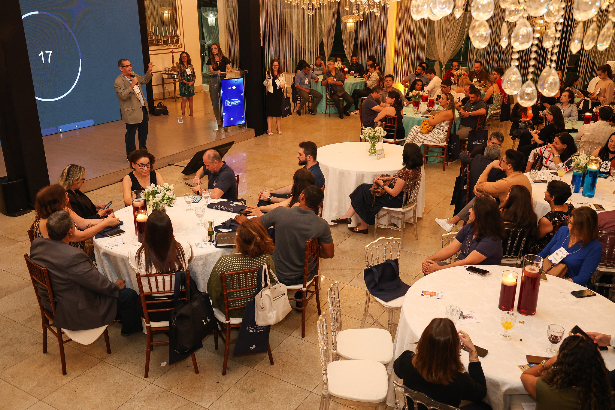Para dinamizar o processo, os participantes registraram as conexões realizadas por meio de um QR Code nos crachás, disponibilizados pelo parceiro ProfPlay, que contabilizou os contatos feitos ao longo da noite. Aqueles com maior número de interações receberam premiações simbólicas, reconhecendo o engajamento e a colaboração.