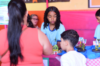 O aroma fresco de manjericão e cheiro-verde tomou conta do pátio da Escola Classe 03 de Brazlândia na última sexta-feira, 10 de outubro. As folhas colhidas da horta escolar, cuidadas com carinho pelos estudantes ao longo do ano, ganharam um novo destino: os espaços montados para a realização da primeira Feira do Programa Jovens Empreendedores Primeiros Passos (JEPP) da unidade escolar. Além das hortaliças, os visitantes também encontraram mini suculentas e dindins de morango, vendidos com entusiasmo pelos estudantes do 1º ao 5º ano do Ensino Fundamental.