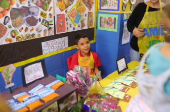 Embora estivesse um pouco tímido no início da realização da feira, Davi conseguiu se superar e assumir um papel de protagonismo, impulsionando as vendas de sua turma. “A gente tem o mix de temperos, que custa R$3,00, o ímã R$4,00 e o açafrão que é R$3,00 também”, falava para quem se aproximava. Com a ajuda das professoras, o pequeno estudante registrava a conclusão de uma venda e logo estava pronto para atrair um novo cliente.