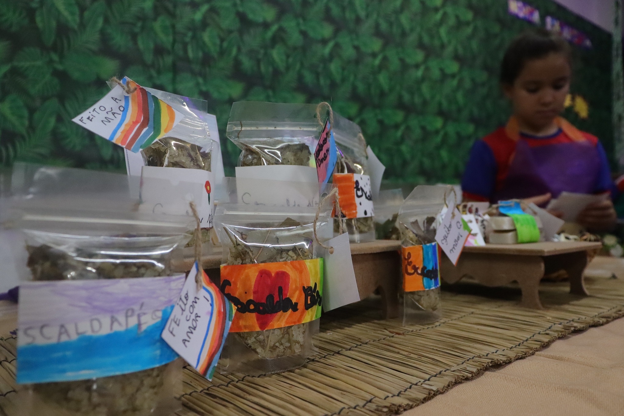 A aluna Rafaella Lima, de 8 anos, participou da feira com entusiasmo. “A gente aprendeu sobre os temperos e plantou manjericão na escola. Eu gostei de cuidar da plantinha e ver ela crescer. Foi muito legal vender as coisas na feira, porque a gente entende o valor do dinheiro e sabe que vai usar o que arrecadar pra fazer outras atividades”, contou.