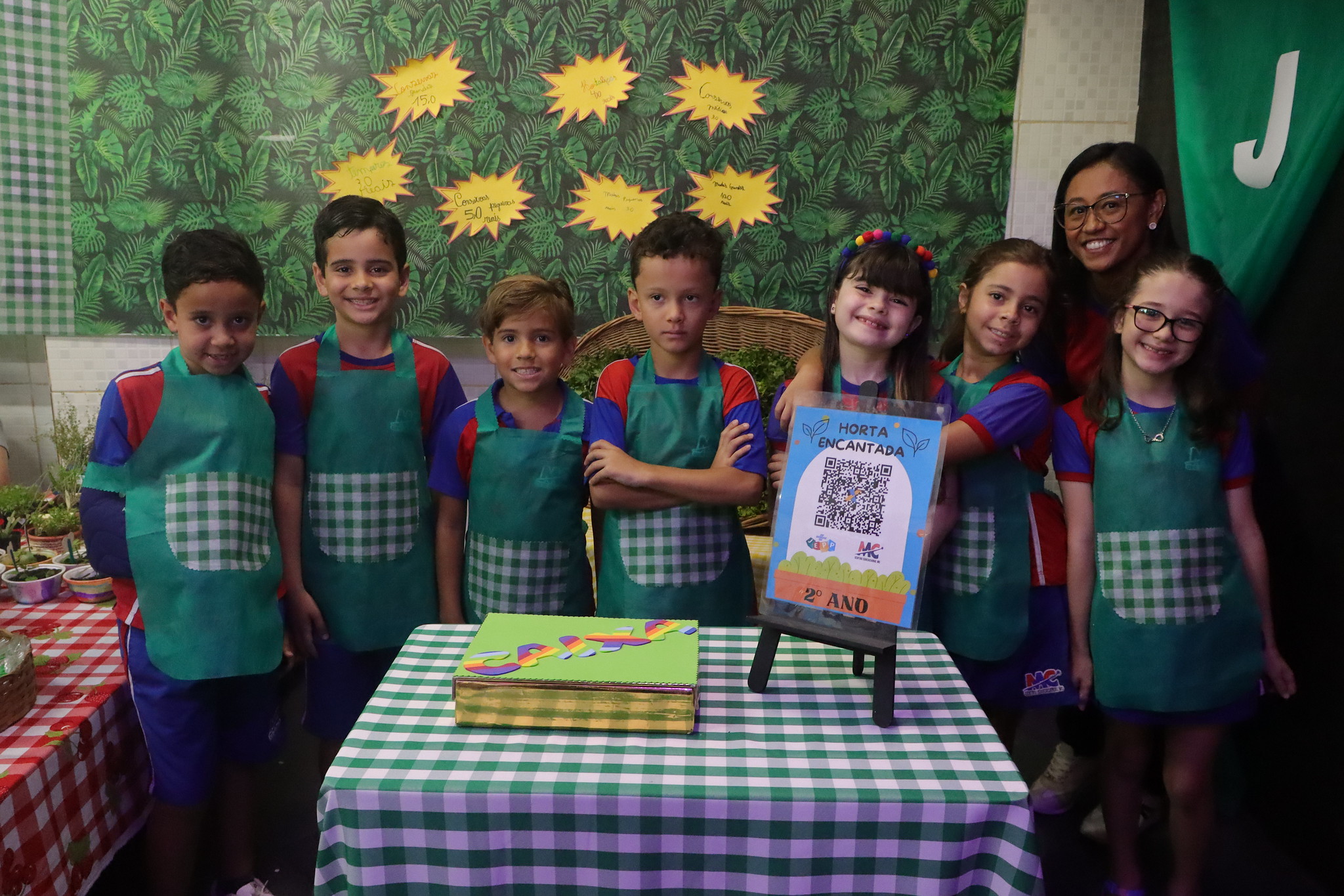 Entre as turmas do ensino fundamental I, o 2º ano se destacou com o projeto “Horta Encantada”, orientado pela professora Celeste Ribeiro. A proposta envolveu o plantio de mudas de manjericão, conservas e temperos naturais, incluindo o limão biribiri, fruta pouco conhecida na região.