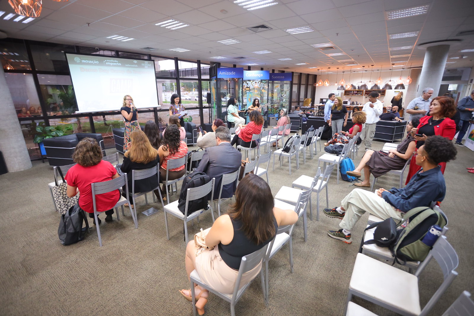 O espaço ainda funcionou como cenário para a continuidade de um workshop que integra uma jornada de letramento de impacto. A atividade foi realizada momentos antes da abertura da programação, reunindo interessados em compreender o universo da economia de impacto. A atividade foi conduzida pela é investidora, inovadora social e gerente de projetos Nayana Cambraia, que compartilhou sua expertise em tecnologias sociais e gestão da mudança para adaptação de metodologias ágeis para negócios de impacto.
