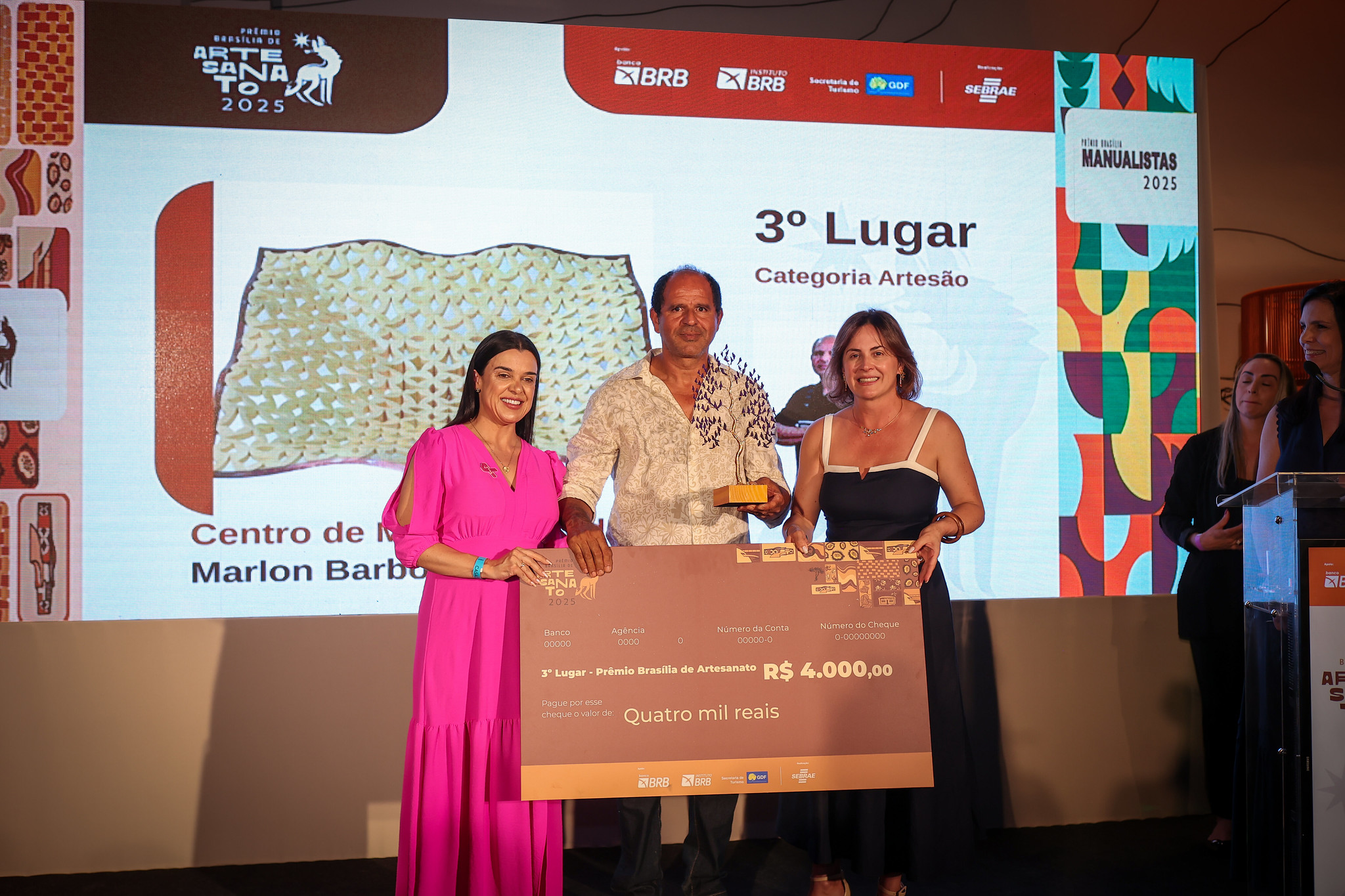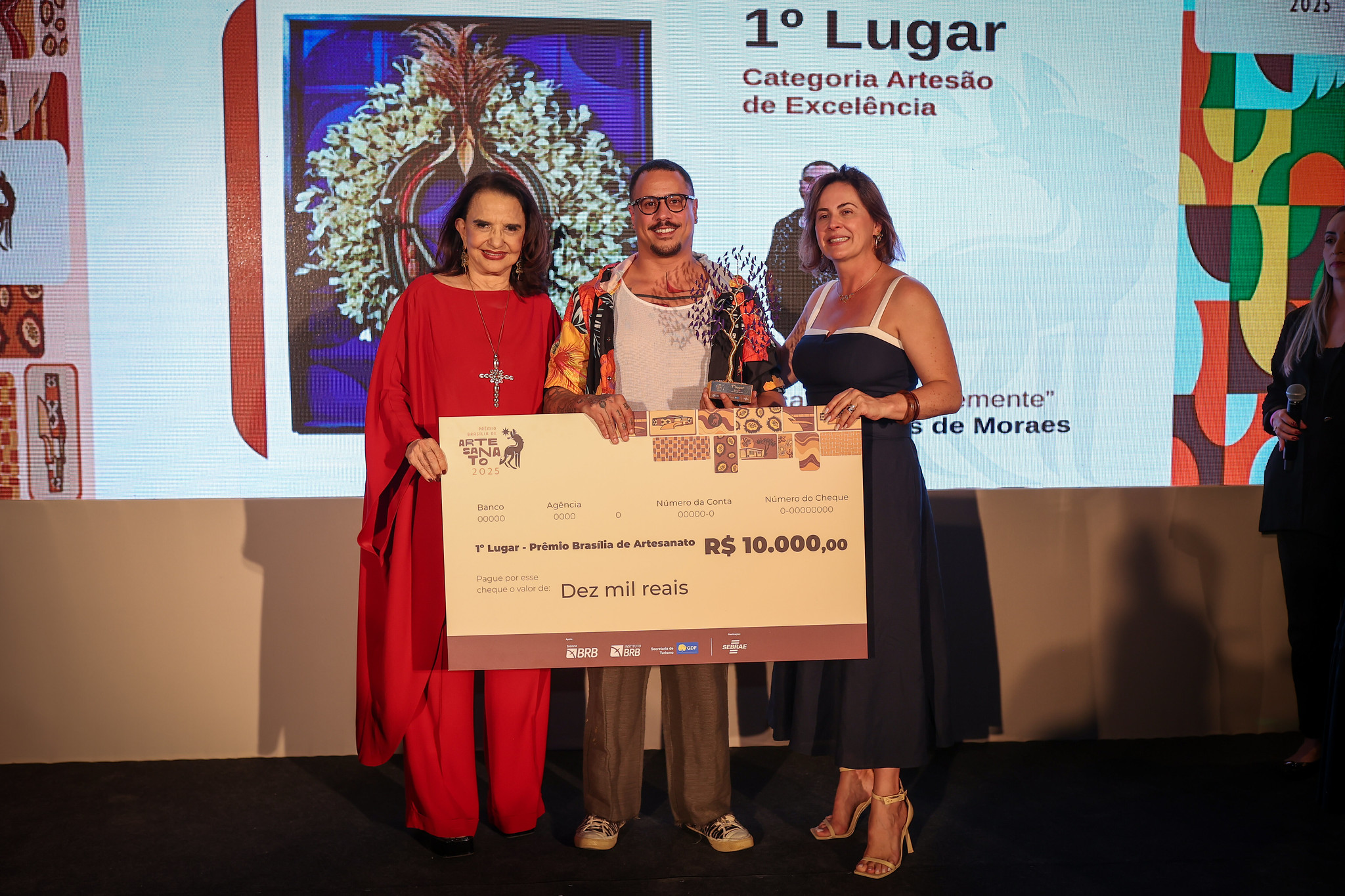 Em seguida, foi o momento de conhecer os três artesãos mais bem colocados na categoria Artesão de Excelência, que busca reconhecer profissionais cujo trabalho se destaca pela excelência técnica e pela contribuição para a valorização do artesanato no Distrito Federal. Bianca Barbosa Santana Nascimento, de Águas Claras, e Mariana Nunes de Oliveira Damasceno, de Sobradinho, ocuparam o terceiro e o segundo lugar, enquanto João Vinícius de Moraes Nascimento, artesão do Gama, ficou com a primeira colocação.