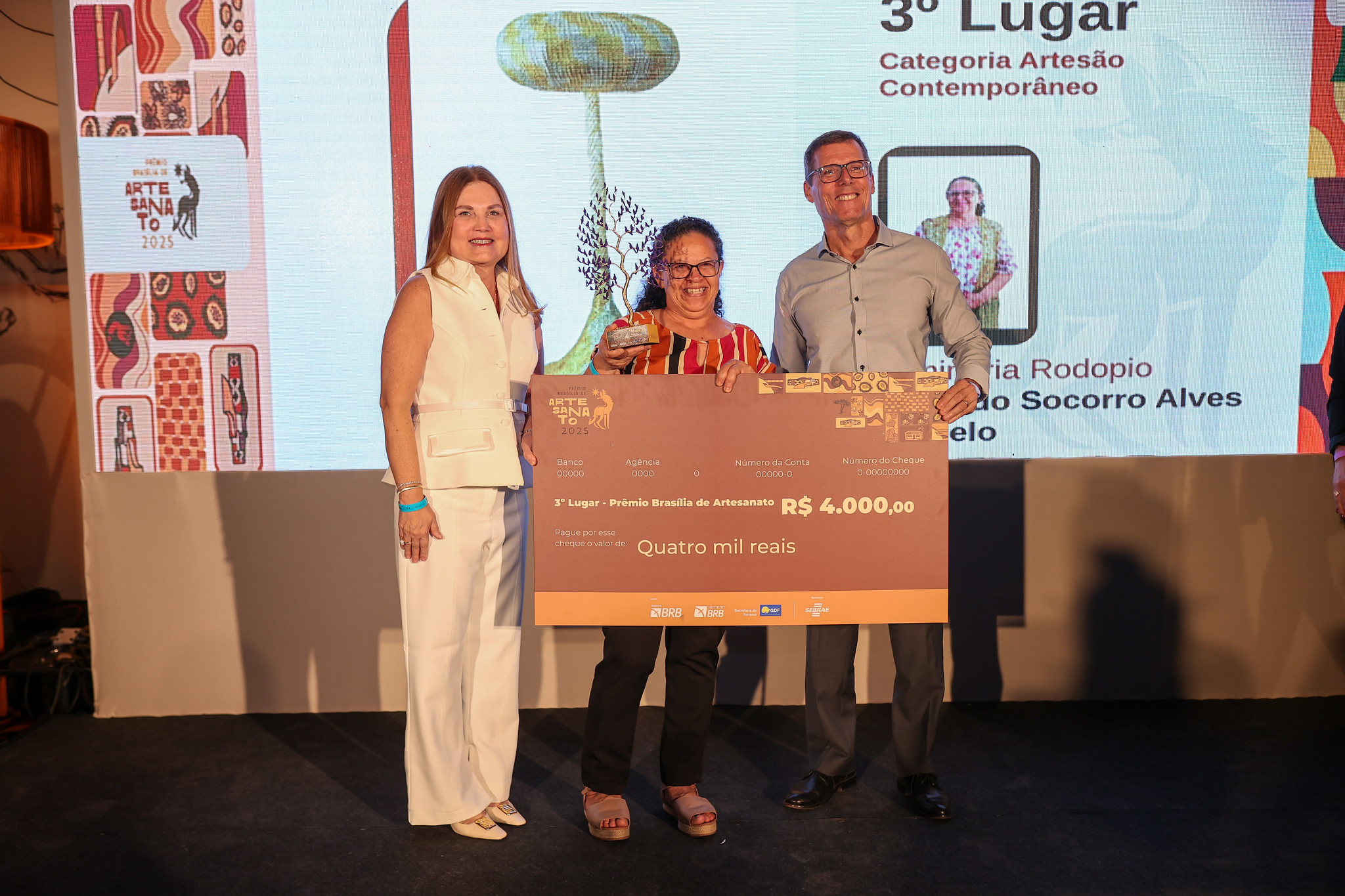 Já nos ritos finais da premiação voltada para os artesãos, o público pôde conferir a premiação da categoria Artesão Contemporâneo, que abrange a produção que resulta da inovação de materiais e incorporação de elementos criativos, utilizando os fundamentos tradicionais para criar peças com uma abordagem atual. A terceira colocação ficou com Maria de Jesus Pereira da Silva, do Recanto das Emas. A segunda posição foi ocupada por Luís Felipe Laraia, de Sobradinho, enquanto a primeira colocação da categoria foi para o artesão Adriano Rodrigues Lima, de Ceilândia.