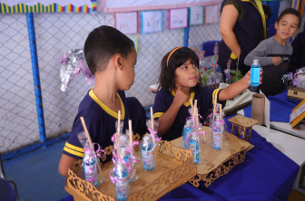 Um dos estudantes a comemorar a comercialização dos sachês foi Lucca Rodrigues Oliveira, de 6 anos. Com um discurso afiado, ele interagia com o público presente à feira e anunciava a quem se aproximava que restavam apenas poucos sachês para serem vendidos.