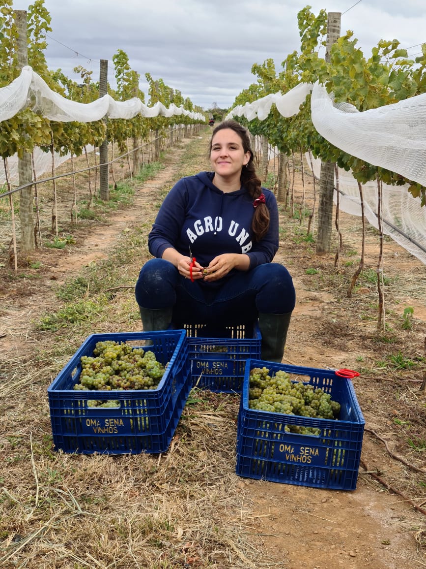 Formada em agronomia, Isabella Bonato administra ao lado de seu pai, mãe e irmão, o vinhedo Oma Sena, um dos primeiros da capital federal