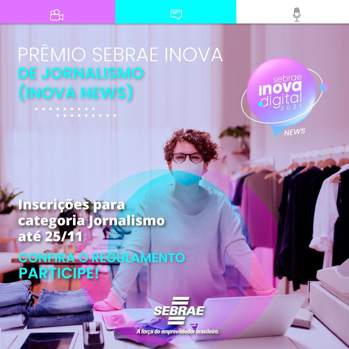Profissionais de imprensa que atuam no Distrito Federal têm até a próxima quinta-feira, 25 de novembro, para se inscreverem no Prêmio Sebrae Inova de Jornalismo. A premiação é organizada pelo Sebrae no DF e tem como objetivo valorizar e estimular produções jornalísticas acerca de temas relacionados à inovação e empreendedorismo.