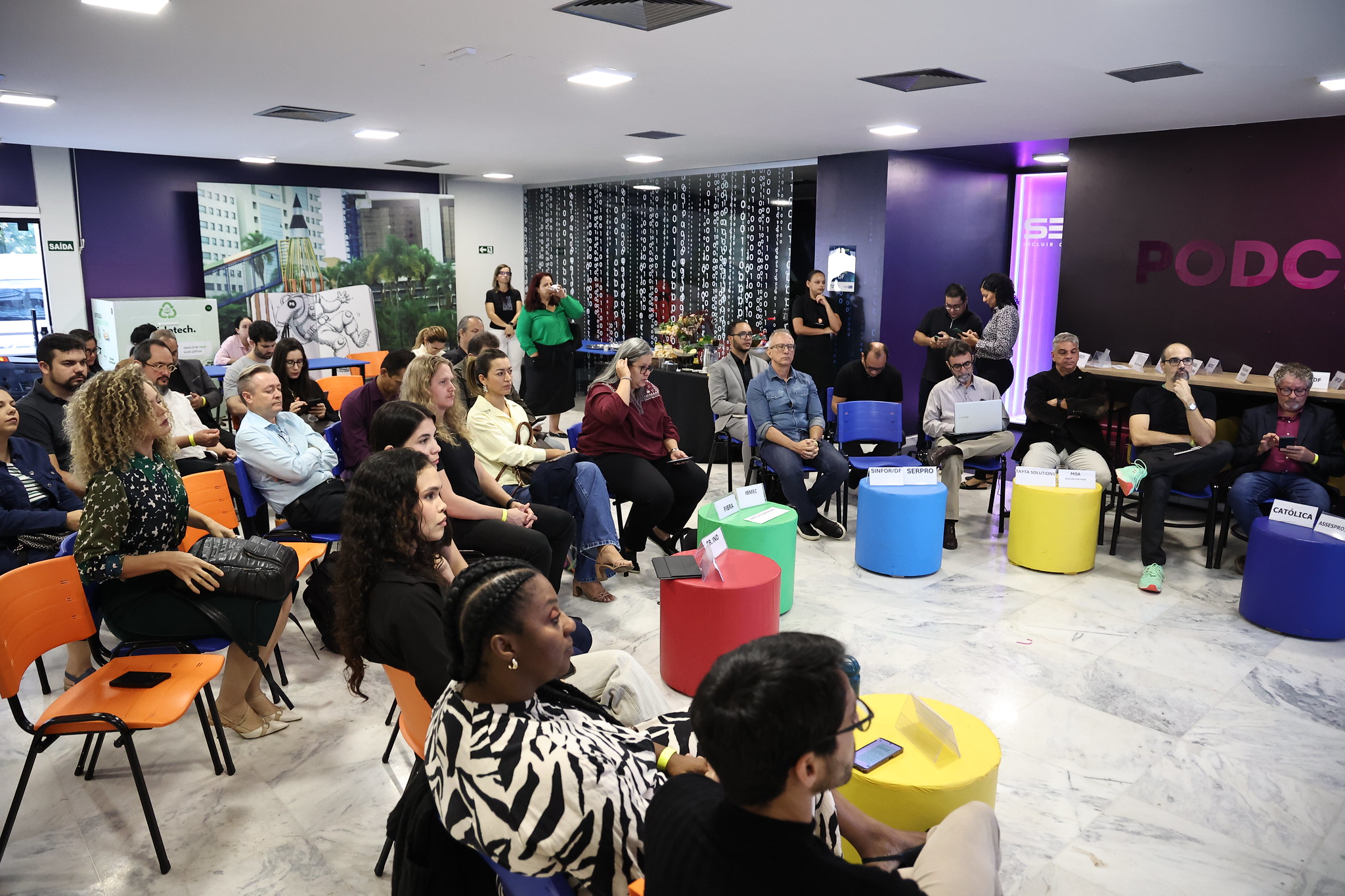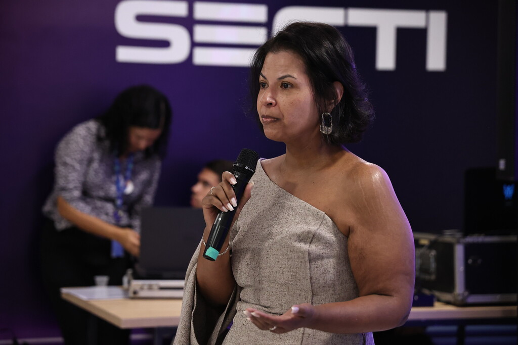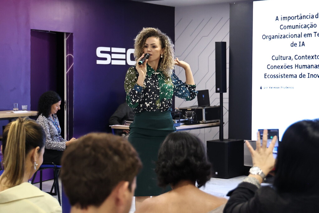 Marcela Sousa, chefe da Assessoria de Comunicação da SECTI-DF, recebeu os participantes no espaço recém-inaugurado da secretaria e ressaltou o papel estratégico da instituição como ponto de encontro para ações de inovação.