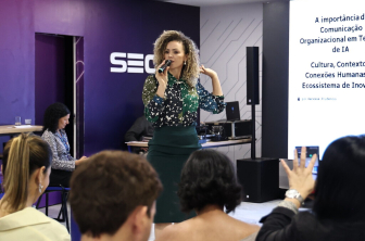 Já Vanessa Prudêncio, da VSP Gestão Empresarial, encerrou as falas com a apresentação A importância da comunicação organizacional em tempos de inteligência artificial, chamando atenção para o uso consciente e estratégico da IA nas empresas e reforçando a comunicação como um ativo da gestão contemporânea.