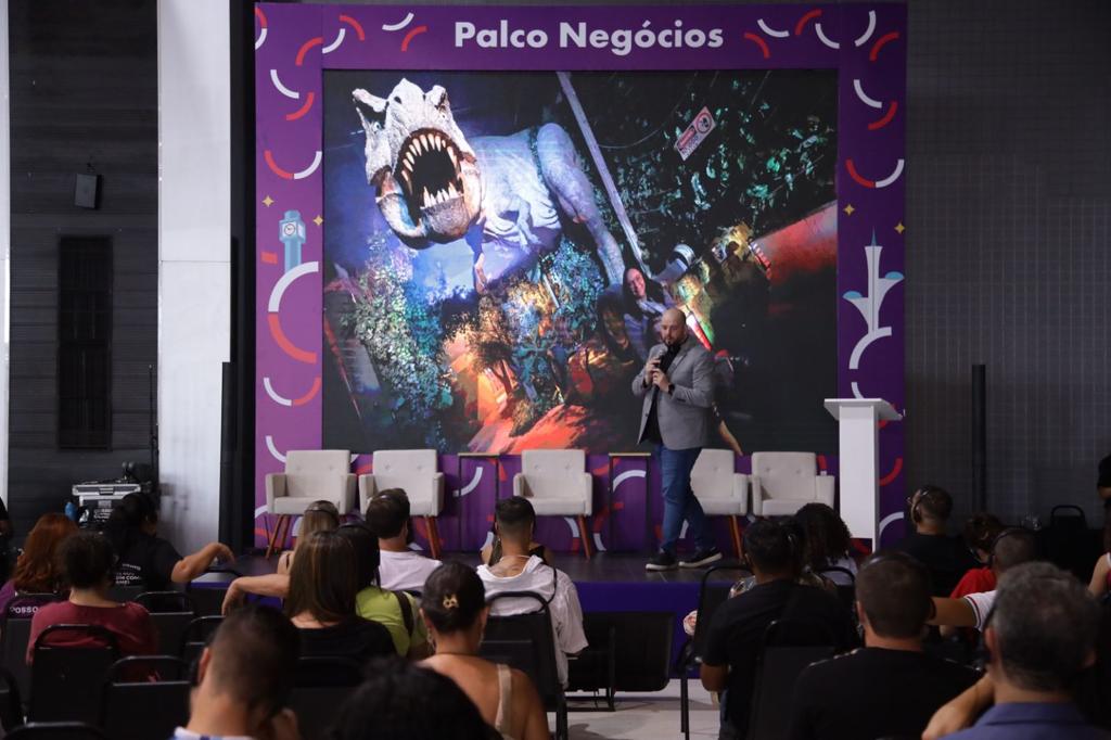 No Palco Negócios, o especialista em inovação no varejo, Caio Camargo, ministrou a palestra “Venda mais e melhor”. Inicialmente ele apresentou marcas mundiais que reinventaram a forma de fazer negócios e sugeriu ao público algumas estratégias para atrair clientes.
