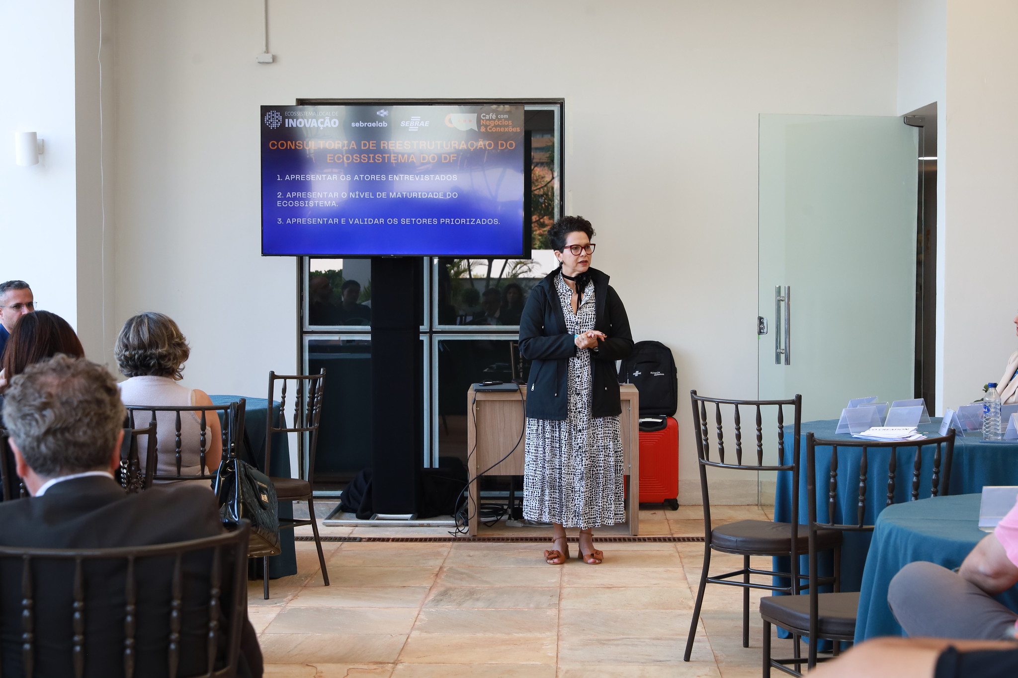 A programação do encontro seguiu com apresentações feitas por atores do ecossistema de inovação distrital. Posteriormente, acompanharam e colaboraram nas discussões sobre a reestruturação do ecossistema de inovação do DF, tema recorrente nas edições anteriores do Café com Negócios & Conexões. A condução ficou novamente a cargo da consultora Adelle Nogueira, que há dois meses integra o evento e orienta o projeto de reestruturação do ecossistema de inovação local, pautado na Metodologia ELI (Ecossistemas Locais de Inovação) do Sebrae Nacional.