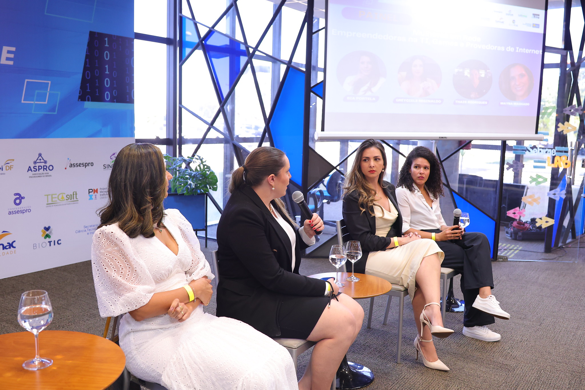 Os minutos que antecederam a pausa para o almoço foram, ainda, oportunidades para discussões sobre cibersegurança, geopolítica, combate às fake news, apresentada por Rodrigo Fragola, CEO da Ogasec, empresa que desde 1997 atua no mercado brasileiros ofertando soluções de segurança de TIC para mercados estratégicos. Houve, também, a realização de um painel sobre a participação de mulheres no setor de TIC, games e provedores de internet, que reuniu Thais Rodrigues (empresária do setor de games), Greyciele Reginaldo (do setor de provedores de internet) e Mayana Machado (do setor de TI). A mediação foi conduzida por Bia Portela, CEO da startup BP HUB uma das vencedoras da última edição do Prêmio Sebrae Mulher de Negócios.