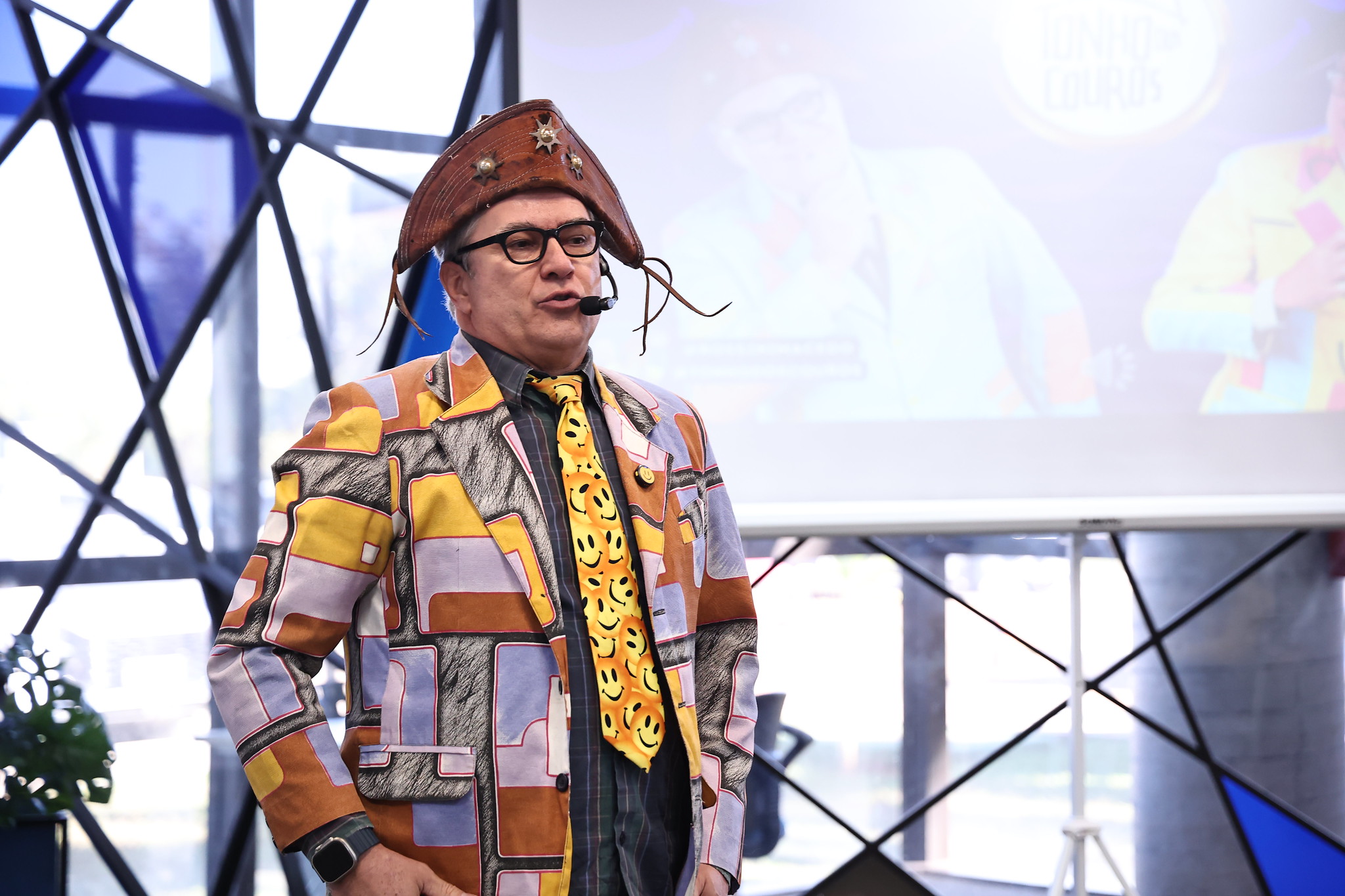 As atividades da tarde foram iniciadas com uma palestra conduzida por Rossini Macedo, mais conhecido como Tonho dos Couros. De uma forma totalmente descontraída, o humorista que ganhou destaque na tela da TV Record, compartilhou reflexões sobre sua trajetória de 26 anos na comédia e destacou o impacto transformador que o humor teve em sua vida pessoal e profissional. O artista enfatizou o poder do sorriso e do otimismo, considerando-os aliados essenciais diante das adversidades cotidianas, e afirmou que, mesmo com problemas, cada pessoa pode assumir um personagem capaz de deixar as dificuldades de lado e focar no presente.